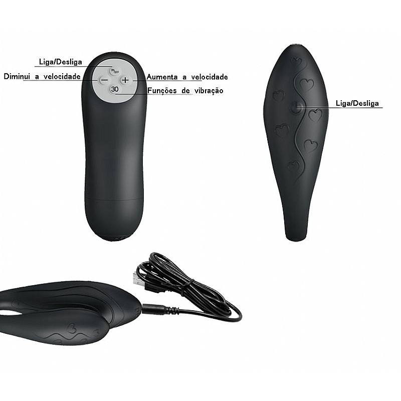 Pretty Love Indulgence Plus, vibrador para casais, com 30 níveis de vibração e 3 velocidas. Feito em silicone cirúrgico, que o torna um produto hipoalregênico, de toque macio e delicado e de fácil limpeza. Muita potência, com dois motores um em cada ponta, tudo isso para te entregar o maximo do prazer. Muito flexível adapta-se perfeitemente a anatomia da mulher, tornando seu uso agradável e prazeroso. Tenho um belo acabamento com desenhos em alto relevo que auxiliam os estimulos. Possui bateria interna recarregável e controle remoto sem fio, bateria com autonomia de até 80 minutos.